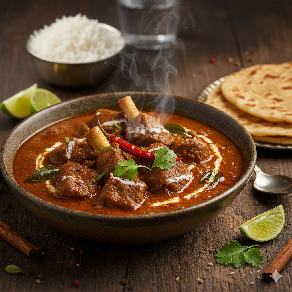 A traditional Sri Lankan-style lamb curry, featuring tender lamb pieces cooked in a fragrant blend of local spices, coconut milk, and aromatic herbs for a rich and flavorful experience