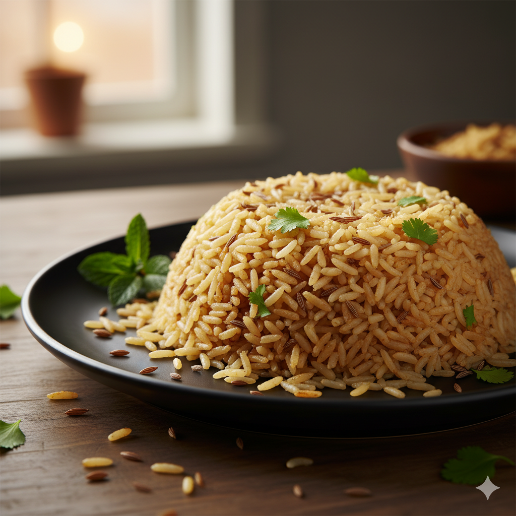 Fragrant basmati rice tempered with roasted cumin seeds and a touch of ghee, creating a simple yet flavorful dish. Light, aromatic, and perfectly seasoned, it’s the ideal companion to rich curries, dals, and grilled dishes.