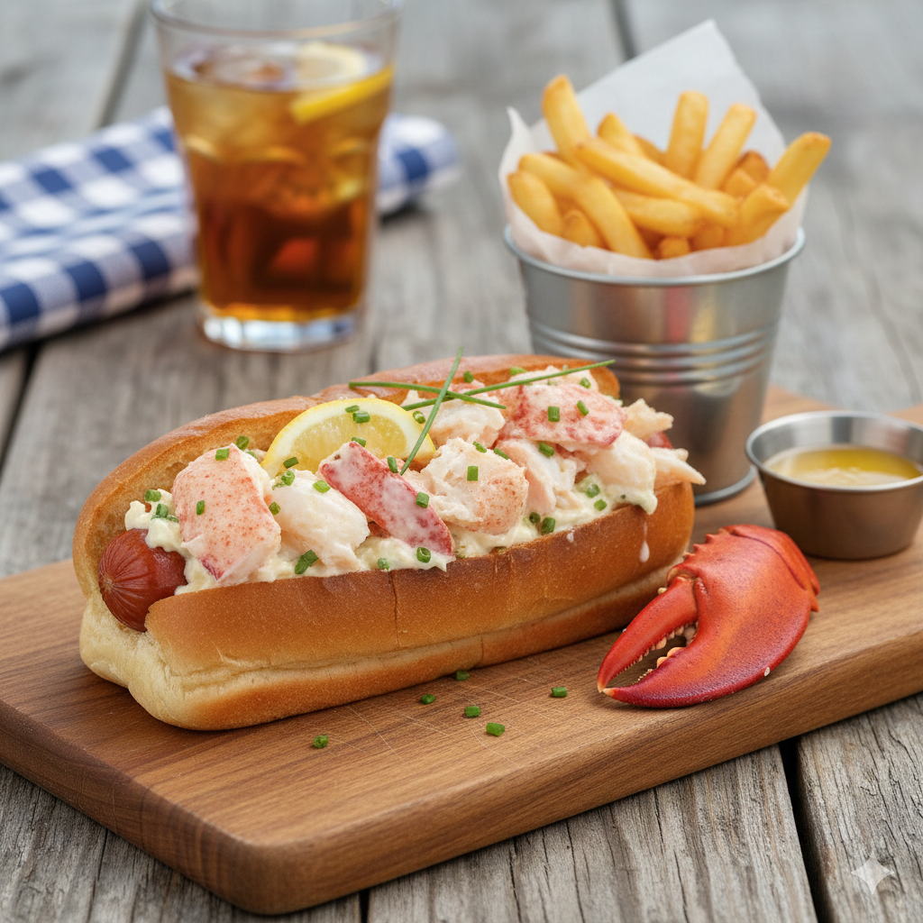 A classic roll filled with tender, juicy lobster meat lightly dressed and served in a soft toasted bun for a rich and indulgent seafood treat.